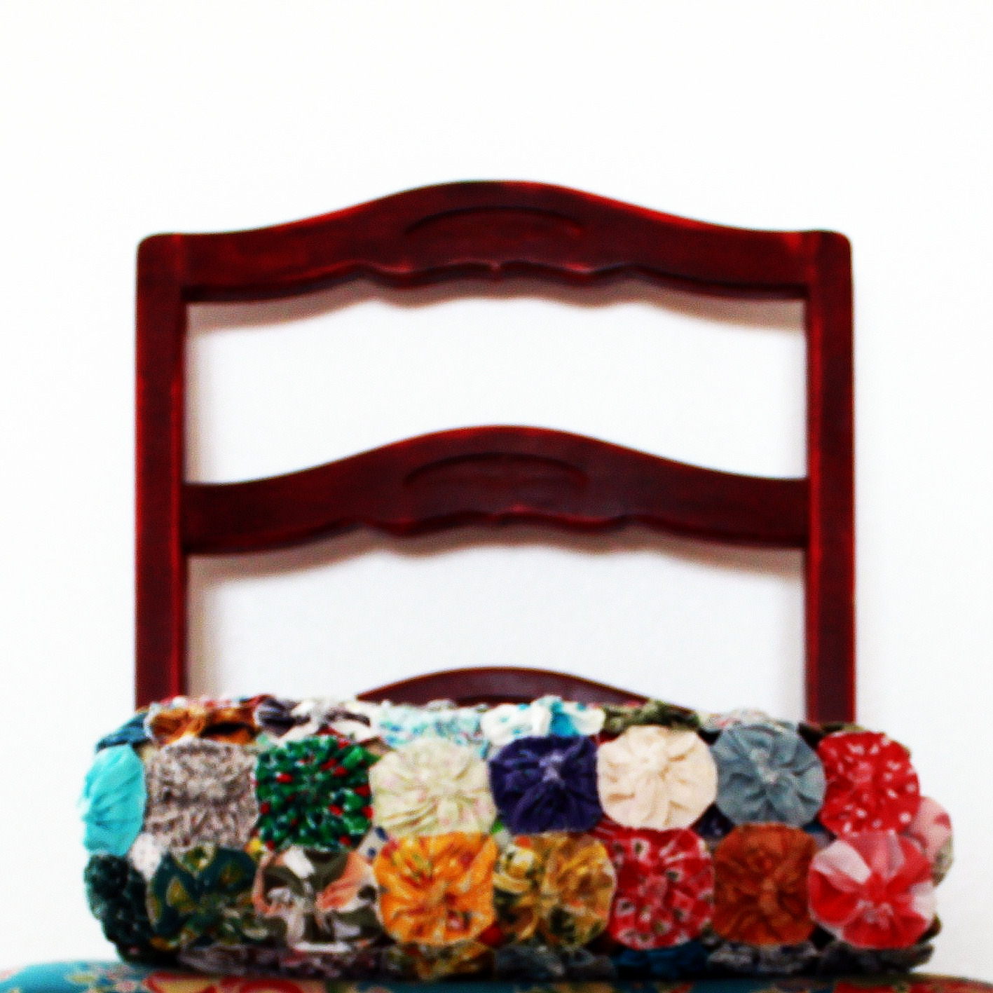 It didn't take very long to gather enough bravery to knock on this strangers door. (not something I would naturally do) I really wanted that quilt! I walked up to the door and knocked. A very friendly looking older lady answered the door with a quizzical brow - I introduced myself and told her what a fan I was of her little quilt sitting in her driveway. I was so happy to find out that she was going to just throw it away and I was welcome to take it off her hands. I'm sure I was probably grinning from ear to ear. I thanked her over and over again and walked away with my yoyo quilt